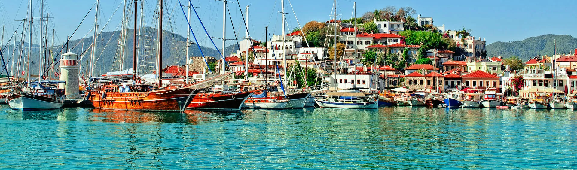 Marmaris is a popular harbour that combines natural beauty with excellent entertainment and nightlife. It is a well sought-after destination that comes with many peaceful locations as well as a bustling town centre. The waterfront has a long boardwalk that is a special place to view the wide variety of Turkish boats that port such as the gulet cruises and luxury private yachts.